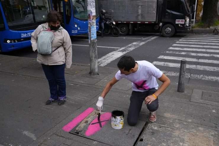 En Bogotá los peatones deben tener cuidado con las losas de pavimento sueltas con las…